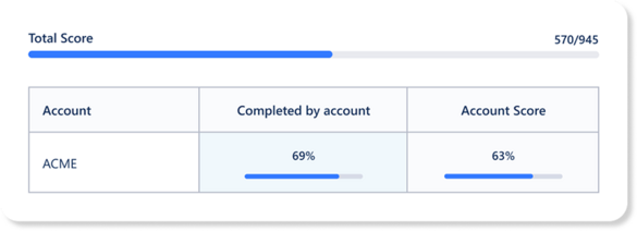 Set up activities, assign a scoring weight to each, and we’ll calculate a success score for every account—helping you quickly spot any accounts that may be overlooked.